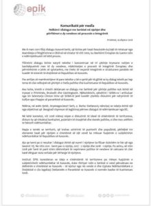 Në vazhdim thuhet në komunikatë, përveç normalizimit të marrëdhënieve mes dy vendeve, dialogu kishte për qëllim avancimin e rrugës integruese të Kosovës dhe Serbisë. Pothuaj tetë vite pas lansimit të dialogut, Instituti EPIK konsideron se Serbia ka përfituar në mënyre asimetrike nga dialogu, derisa Kosova jo që ka ngecur në vend, por ka bërë prapakthim tejet të dëmshëm.