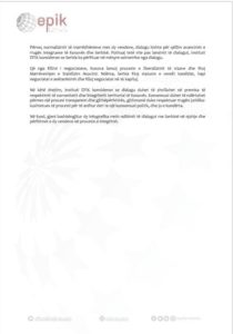 Në vijim e botojmë të plotë komunikatën për media të institutit EPIK pa ndërhyrje redaksionale, si dhe infografikat që e shoqërojnë këtë kominikatë: