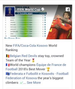 Kosova vitin 2018 e ka përmbyllur pa humbje, gjë që ka bërë që ‘Dardanët’ të jenë kombëtarja me rritjen më të madhe në renditjen e FIFA-s për këtë vit, duke u ngritur për 46 vende.