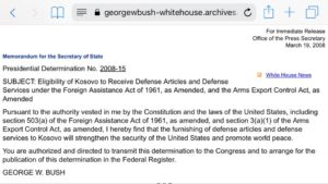 “Me 19 mars 2008, Presidenti George W. Bush nënshkroi vendimin për dhënien e ndihmës ushtarake të ShBA-ve për Kosovën. Ky vendim është ende në fuqi”, ka shkruar deputeti Ilir Deda në faqen e tij zyrtare nё rrjetin social Facebook, pёrcjell Kabllogrami
