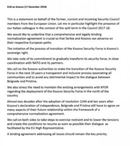 Aty thuhet se të dyja palët duhet të tregojnë përmbajtje dhe të ulin tensionet për të krijuar kushte për vazhdimin sa më të shpejtë të dialogut me ndërmjetësimin e BE-së.