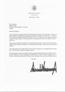 Në këtë letër, Presidenti Trump, ndër të tjera kërkon nga presidenti Thaçi dhe liderët e Kosovës që të shfrytëzohet ky moment unik, që të flasin me një zë, me qëllim të arritjes së marrëveshjes gjithëpërfshirëse me Serbinë.