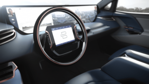 E gjithë vetura mund të kontrollohet nga një tablet që gjendet në mes të timonit.